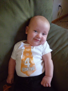 - clothes- 6 months for everything, we're about to have to move to bigger pajamas to keep up with his length